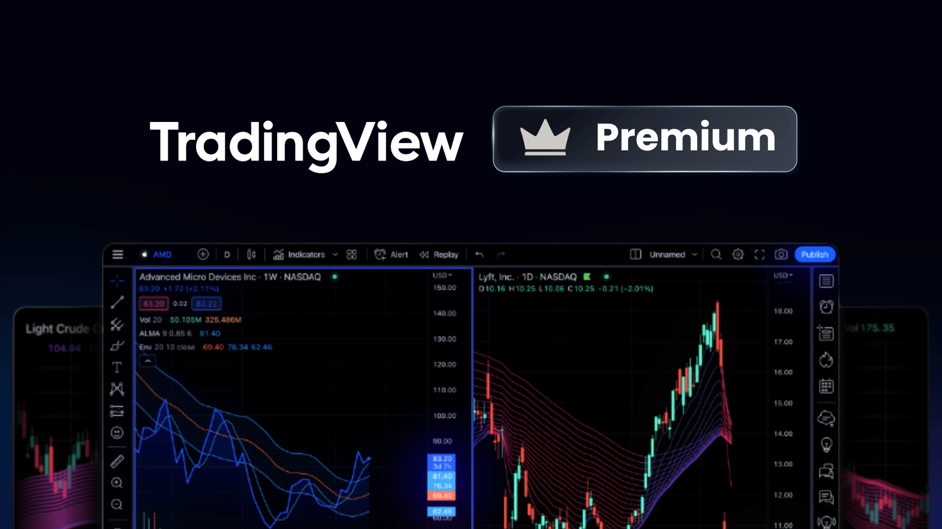 Premium ($59.95/เดือน): มาตรฐานระดับโปร เปิดได้ 8 หน้าต่างต่อแท็บ, 25 Indicators, แจ้งเตือน 400 รายการ และดูข้อมูลแท่งเทียนย้อนหลังได้ถึง 20,000 บาร์