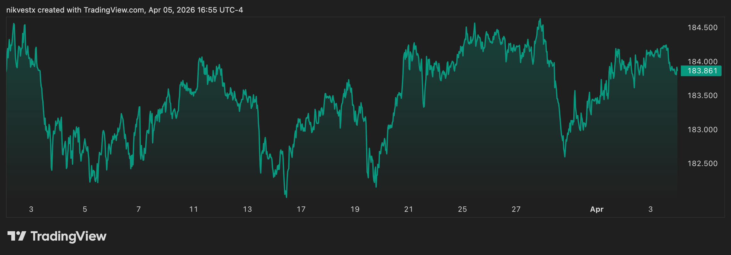 April Prediction: The downside risk is severe. We project a flush targeting the major psychological support at 180.00.
