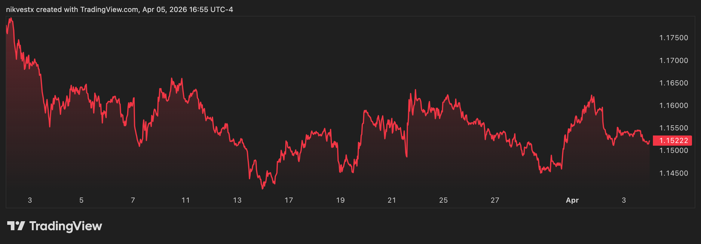 April Prediction: Gravity takes hold. The pair will likely slice through the 1.1475 macro wick and settle near the 1.1400 options barrier.