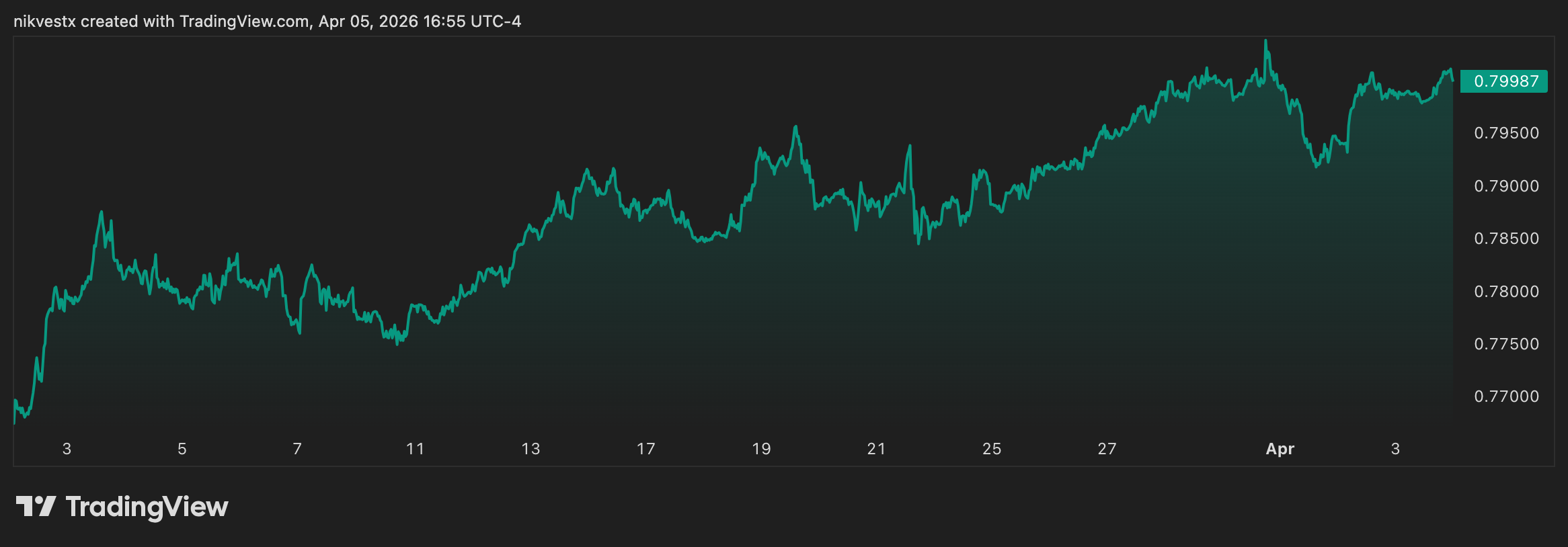 April Prediction: The trend remains your friend. Expect the USD/CHF to easily clear the 0.8000 handle and target the 0.8050 psychological magnet.